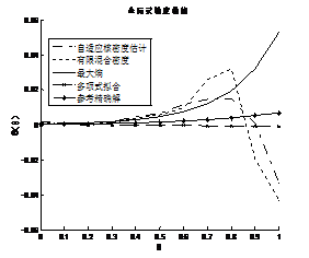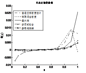 對于此工程算例,利用900個失效樣本點擬合概率密度函數(shù)和全局靈敏度。由圖8.7可以看出基于有限混合密度和自適應(yīng)核密度估計方法得到的失效概率函數(shù)曲線波動較大,其他兩種方法雖也有較大誤差,但與參考精確解的曲線的趨勢較為貼近。由圖8.8可以看出基于最大熵密度估計法與正交多項式擬合概率密度法所得的全局靈敏度曲線與參考精確解的曲線相差不大,而基于有限混合密度法與自適應(yīng)核密度估計法得到的全局靈敏度仍然波動較大。