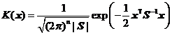 為核概率密度函數(shù),通常取正態(tài)型核密度函數(shù),其形式如下